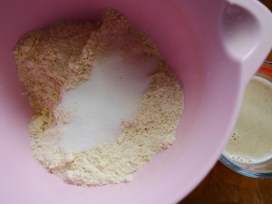 Combine the milk and vanilla and pour into the bowl. Use a spatula or wooden spoon to quickly bring the ingredients together. You will have a very soft dough that you should be able to just about bring together with your hands. If it feels dry, sprinkle in another tablespoon of milk.