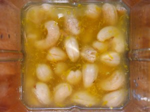 Drain the cashews, and place in a blender with the lemon zest and juice (topped up with water if necessary), sugar and saffron or turmeric if using. Whizz on the highest speed for a good couple of minutes or until completely smooth and creamy.