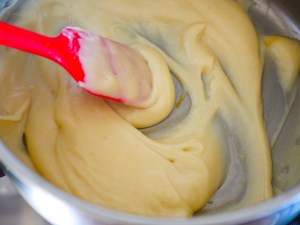 Pour the mixture into a saucepan and heat very gently while stirring. By the time it starts to bubble it will also thicken. Keep stirring for just a minute then remove from the heat. Whisk in the vegan butter then transfer to a dish or jar cool and firm up. Store in the refrigerator and use within about a week.