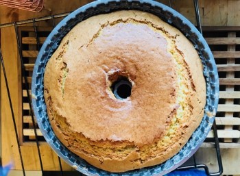 7. Allow the cake to cool in the tin for about 30 minutes, roughly when the tin is just about cool enough to handle. Turn out on to a cooling rack until completely cold.