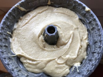 2. Thoroughly oil your tin, making sure you get into every nook and cranny. I like to sieve a little flour over the tin as well – when the inside looks lightly dusted, tip it upside down to get rid of the excess. Now you’re good to go with the batter.