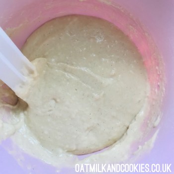 Pour the wet mix into the dry and quickly whisk together. This is best done by hand; muffin mixtures don’t need to be really smooth. The odd lumpy bit here and there is absolutely fine; just make sure there aren’t any floury bits visible.