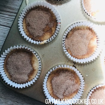 Now sprinkle about 1/2 tsp of the snickerdoodle topping per muffin and get them in the oven. Bake for 20-23 minutes on the middle shelf until they are well risen, golden and firm to the touch. Remove from the tin as soon as they are cool enough to handle and transfer to a cooling rack.